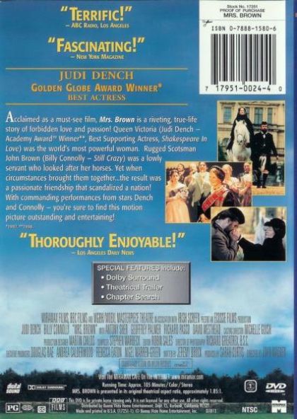 Queen Victoria is deeply depressed after the death of her husband, disappearing from public. Her servant Brown, who adores her, through caress and admiration brings her back to life, but that relationship creates scandalous situation and is likely to lead to monarchy crisis.