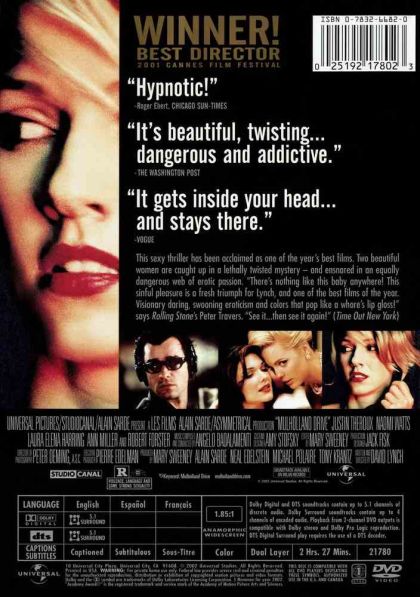 After a car wreck on the winding Mulholland Drive renders a woman amnesic, she and a perky Hollywood-hopeful search for clues and answers across Los Angeles in a twisting venture beyond dreams and reality.
