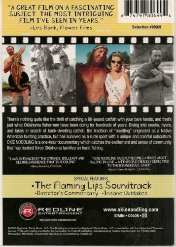 For centuries, a unique breed of fishermen has been catching monster catfish with their bare hands in the rivers and lakes of Oklahoma. Today, the tradition of "noodling" still has Okie anglers hooked. This documentary by Bradley Beesley features interviews with hardcore handfishing veterans as well as footage of real noodlers in action. Set against an original musical score by rock band The Flaming Lips, Okie Noodling offers an anecdotal look at a most unusual piece of Midwest American culture.