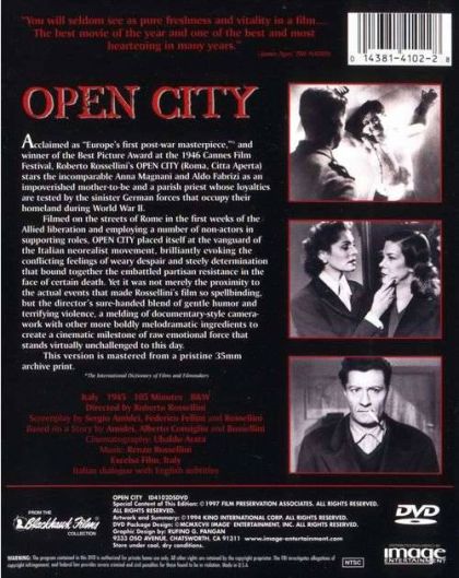 Open City is a landmark in film history. Filmed in secrecy during the Nazi occupation of Italy, the film shows a realistic portrayal of the underground resistance in Italy in 1945. The film has strong impacting imagery with it’s mix of fiction and reality that strengthened Italian Neo-realism and the film industry.