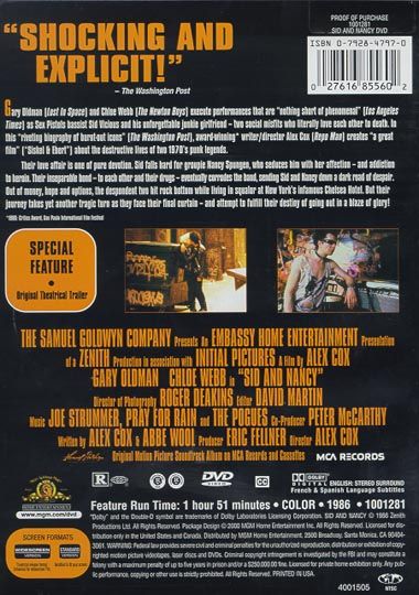 A lacerating love story, 'Sid & Nancy' chronicles the brief, intense attachment of two of punk's most notorious poster children, Sex Pistols bassist Sid Vicious and his girlfriend, Nancy Spungen.