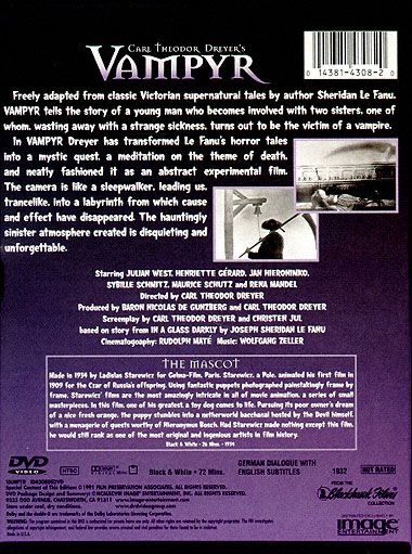 Young traveller Allan Grey arrives in a remote castle and starts seeing weird, inexplicable sights (a man whose shadow has a life of its own, a mysterious scythe-bearing figure tolling a bell, a terrifying dream of his own burial). Things come to a head when one of the daughters of the lord of the castle succumbs to anaemia - or is it something more sinister?