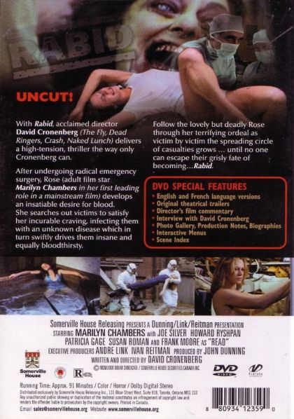 After undergoing radical surgery for injuries from a motorcycle accident, a young woman (former adult film star Marilyn Chambers) develops a strange phallic growth on her body and a thirst for human blood -- the only nourishment that will now sustain her.