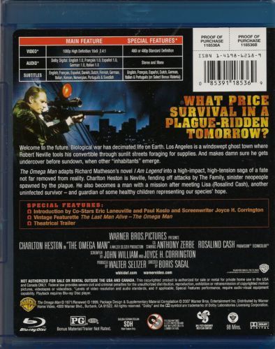 Due to an experimental vaccine, Dr. Robert Neville is the only human survivor of an apocalyptic war waged with biological weapons. Besides him, only a few hundred deformed, nocturnal people remain; sensitive to light, and homicidally psychotic.