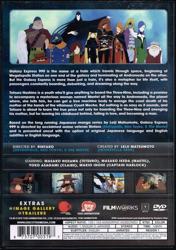 Tetsuro Hoshino's life changes forever: his mother is murdered, and he is rescued and taken on board the Galaxy Express 999 by the mysterious woman Maetel.