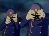 The planet Nuruba is inhabited by eternal, shape-shifting formless blobs. Two of them kidnap Tetsuro and Maetel and impersonate them to get on the 999.