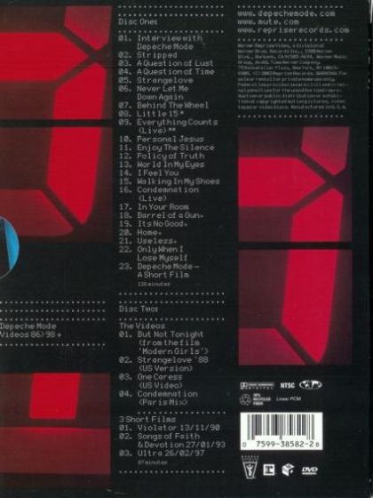 The Videos 86>98 is a music video compilation by Depeche Mode, featuring almost two dozen music videos directed by a variety of directors, released in 1998. It coincides with The Singles 86>98. The original movie was released on VHS and DVD. There was however a special edition, DVD only, called Videos 86>98 + (without "The", and with "+") released in 2002. The DVD was two discs, the first disc being identical to the only disc in the original DVD, while the second DVD contains bonus material not found in the original release.