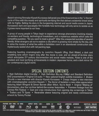 After one of their friends commits suicide, strange things begin happening to a group of young Tokyo residents. One of them sees visions of his dead friend in the shadows on the wall, while another's computer keeps showing strange, ghostly images. Is their friend trying to contact them from beyond the grave, or is there something much more sinister going on?