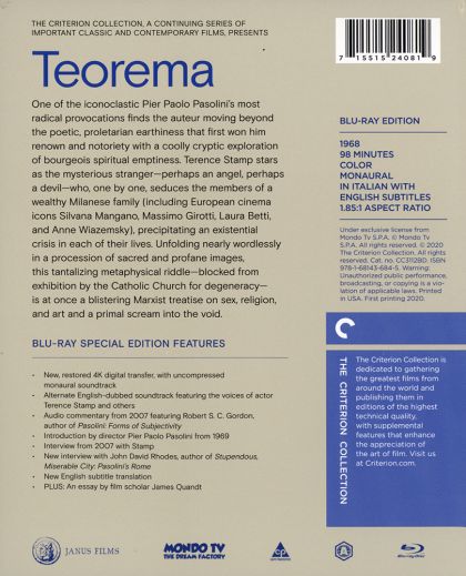 A wealthy Italian household is turned upside down when a handsome stranger arrives, seduces every family member and then disappears. Each has an epiphany of sorts, but none can figure out who the seductive visitor was or why he came.
