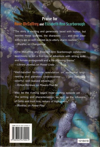 In Changelings, bestselling authors Anne McCaffrey and Elizabeth Ann Scarborough returned to the sentient planet Petaybee with a story of growth and transformation in the face of deadly new threats. The telepathic, shapeshifting twins Murel and Ronan found that Petaybee had plans for them as well. Now those plans begin to bear fruit with fresh possibilities . . . and dangers.MAELSTROMNow that Petaybee is forming a new equatorial island, the planet has agreed to harbor a group of new refugees, workers indentured to the powerful InterGal Corporation. But the mission to collect the immigrants becomes a rescue operation when it is revealed that InterGal is doing nothing to help these survivors of a world devastated by a meteor shower. Murel and Ronan set out to persuade the frightened refugees to come out of hiding, leave their world, and bring along their sacred totem animals, the gifted sea turtles called the Honus. But the twins discover that they’ve taken on more than they expected: The Honus are not the only animals sacred to the refugees. There are also the Manos, intelligent sharks who have lost none of their predatory habits–and who cannot be left behind to die.When the Manos are released into Petaybee’s waters, a tragic misunderstanding endangers the whole resettlement operation. At the same time, the mysterious sea otters who once rescued the twins’ father are suddenly revealed to be much more than they appear to be.Now it is up to Ronan and Murel, with the intrepid assistance of their river otter friend Sky, to smooth the waters before a maelstrom of revenge destroys Petaybee’s harmonious way of life.But even as the twins uncover startling new facts about Petaybee’s past that will change everything they thought they knew about the planet, the forces of InterGal are gathering, preparing to strike. . . .