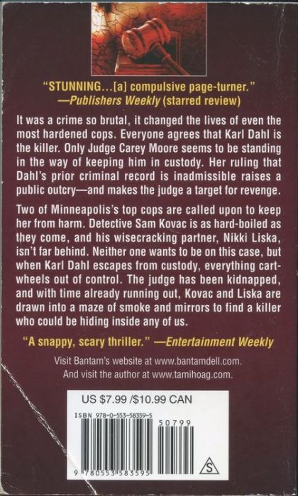 New York Times bestselling author Tami Hoag returns with a thriller that begins with a shocking crime scene you’ll never forget and follows two relentless detectives on a manhunt that ends in a chilling confrontation with the essence of human evil. It was a crime so brutal, it changed the lives of even the most hardened homicide cops. The Haas family murders left a scar on the community nothing can erase, but everyone agrees that convicting the killer, Karl Dahl, is a start. Only Judge Carey Moore seems to be standing in the way. Her ruling that Dahl’s prior criminal record is inadmissible raises a public outcry—and puts the judge in grave danger. When an unknown assailant attacks Judge Moore in a parking garage, two of Minneapolis’s top cops are called upon to solve the crime and keep the judge from further harm. Detective Sam Kovac is as hard-boiled as they come, and his wisecracking partner, Nikki Liska, isn’t far behind. Neither one wants to be on this case, but when Karl Dahl escapes from custody, everything changes, and a seemingly straightforward case cartwheels out of control. The stakes go even higher when the judge is kidnapped—snatched out of her own bed even as the police sit outside, watching her house. Now Kovac and Liska must navigate through a maze of suspects that includes the stepson of a murder victim, a husband with a secret life, and a rogue cop looking for revenge where the justice system failed. With no time to spare, the detectives are pulled down a strange dark trail of smoke and mirrors, where no one is who they seem and everyone is guilty of Prior Bad Acts. From the Hardcover edition.