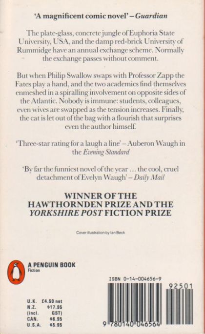 When Phillip Swallow and Professor Morris Zapp participate in their universities' Anglo-American exchange scheme, the Fates play a hand, and each academic finds himself enmeshed in the life of his counterpart on the opposite side of the Atlantic. Nobody is immune to the exchange: students, colleagues, even wives are swapped as events spiral out of control. And soon both sun-drenched Euphoric State University and rain-kissed University of Rummidge are a hotbed of intrigue, lawlessness and broken vows...'Not since Lucky Jim has such a funny book about academic life come my way' - "Sunday Times".