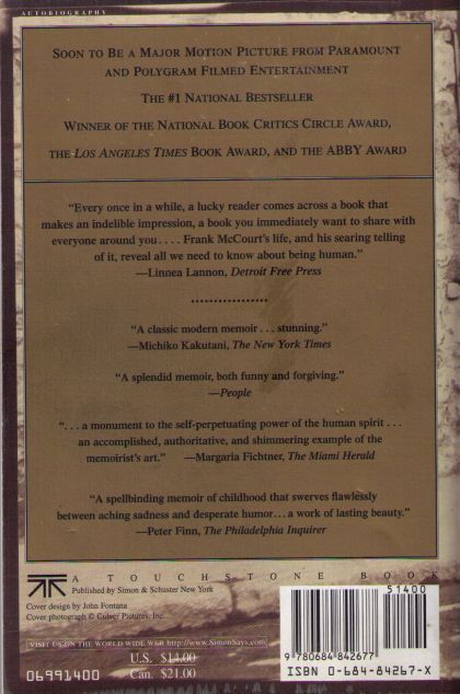 “When I look back on my childhood I wonder how I managed to survive at all. It was, of course, a miserable childhood: the happy childhood is hardly worth your while. Worse than the ordinary miserable childhood is the miserable Irish childhood, and worse yet is the miserable Irish Catholic childhood.” So begins the luminous memoir of Frank McCourt, born in Depression-era Brooklyn to recent Irish immigrants and raised in the slums of Limerick, Ireland. Frank’s mother, Angela, has no money to feed the children since Frank’s father, Malachy, rarely works, and when he does he drinks his wages. Yet Malachy—exasperating, irresponsible, and beguiling—does nurture in Frank an appetite for the one thing he can provide: a story. Frank lives for his father’s tales of Cuchulain, who saved Ireland, and of the Angel on the Seventh Step, who brings his mother babies. Perhaps it is story that accounts for Frank’s survival. Wearing rags for diapers, begging a pig’s head for Christmas dinner and gathering coal from the roadside to light a fire, Frank endures poverty, near-starvation and the casual cruelty of relatives and neighbors—yet lives to tell his tale with eloquence, exuberance, and remarkable forgiveness. Angela’s Ashes, imbued on every page with Frank McCourt’s astounding humor and compassion, is a glorious book that bears all the marks of a classic.