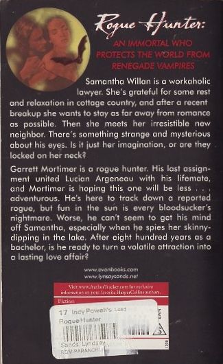 Samantha Willan is a workaholic lawyer. She's grateful for some rest and relaxation in cottage country, and after a recent breakup she wants to stay as far away from romance as possible. Then she meets her irresistible new neighbor. There's something strange and mysterious about his eyes. Is it just her imagination, or are they locked on her neck? Garrett Mortimer is a rogue hunter. His last assignment united Lucian Argeneau with his lifemate, and Mortimer is hoping this one will be less . . . adventurous. He's here to track down a reported rogue, but fun in the sun is every bloodsucker's nightmare. Worse, he can't seem to get his mind off Samantha, especially when he spies her skinny-dipping in the lake. After eight hundred years as a bachelor, is he ready to turn a volatile attraction into a lasting love affair?