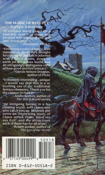 L.E. Modesitt, Jr.'s The Magic of Recluce begins his bestselling fantasy series the Saga of Recluce, which is one of the most popular in contemporary epic fantasy.Young Lerris yearns to find a place in the world better suited to his skills and temperament. In Recluce this means taking one of two options: permanent exile from Recluce or the dangergeld, a complex, rule-laden wanderjahr in the lands beyond. Many do not survive.Lerris chooses dangergeld.Lerris will need magic in the lands beyond, where the power of the Chaos Wizards reigns unchecked, and he must learn to use his powers in an orderly way before his wanderjahr, or fall prey to Chaos. Saga of Recluce#1 The Magic of Recluce / #2 The Towers of Sunset / #3 The Magic Engineer / #4 The Order War / #5 The Death of Chaos / #6 Fall of Angels / #7 The Chaos Balance / #8 The White Order / #9 Colors of Chaos / #10 Magi’i of Cyador / #11 Scion of Cyador / #12 Wellspring of Chaos / #13 Ordermaster / #14 Natural Order Mage / #15 Mage-Guard of Hamor / #16 Arms-Commander / #17 Cyador’s Heirs / #18 Heritage of Cyador /#19 The Mongrel Mage / #20 Outcasts of Order / #21 The Mage-Fire War (forthcoming)Story Collection: Recluce TalesOther Series by L.E. Modesitt, Jr.The Imager PortfolioThe Corean ChroniclesThe Spellsong CycleThe Ghost BooksThe Ecolitan Matter