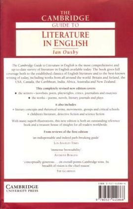Substantially enlarged and updated, this new edition of The Cambridge Guide to Literature in English confirms its status as the most authoritative survey of its subject now available in a single volume. Its coverage of novelists, poets, playwrights and their works embraces both the established classics of English literature and a wealth of contemporary figures from all over the English-speaking world, such as Saul Bellow, Adrienne Rich, Les Murray, Wole Soyinka, R. K. Narayan, Janet Frame, Mordecai Richler, Joseph Brodsky, J. M. Coetzee and Ben Okri. Under Ian Ousby's editorship over a hundred contributors provide detailed biographical and critical articles, not only about writers and works of literature, but also about the critics, philosophers, historians and biographers who have influenced or reacted to literature. Substantial coverage is given to popular genres such as science fiction, detective novels and children's literature, with entries on, for example, Dr. Seuss, Margaret Mahy, Roald Dahl, Isaac Asimov, Frederik Pohl, P. D. James and Nicolas Freeling. Other entries range widely over literary groups and movements, critical schools, genres, poetic forms, critical concepts, rhetorical terms, literary terms, theatres and theatre companies. There are also substantive articles on subjects such as copyright, libraries and the English language. With a superb range of illustrations and a comprehensive cross-referencing system, The Cambridge Guide to Literature in English is both an outstanding reference book, and a delightful companion for anyone who enjoys reading.