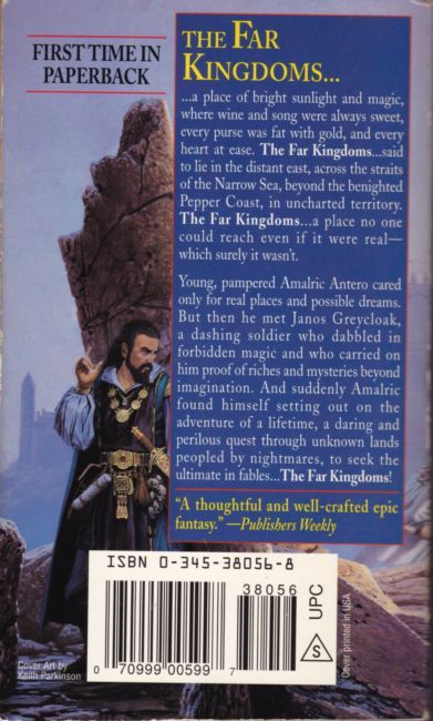 The Far Kingdoms...a place of bright sunlight surrounded by dark, deadly wilderness. A place where the princes and magicians were kind and wise beyond all imagination. A place where wine and song were always sweet, every purse was fat with gold, and every heart at ease. The Far Kingdoms...said to lie in the distant east, across the straits of the Narrow Sea, beyond the benighted Pepper Coast, in uncharted territory. The Far Kingdoms...a place no one could reach even if it were real - which surely it wasn't. Young, pampered Amalric Antero cared only for real places and possible dreams. The time had come to Find His Tradewind, to make the traditional journey seeking out new lands, new riches, new customers as his merchant father, and his father's father, had done before him. He meant only to do as all young traders did: travel to the known lands in the west and return home having proved himself able to deal well with his father's customers. Nothing more was expected. But then he met Janos Greycloak, a dashing soldier who dabbled in forbidden magic and who carried on him proof of riches and mysteries beyond imagination. And suddenly Amalric found himself setting out on the adventure of a lifetime, a daring and perilous quest through unknown lands peopled by nightmares, to seek the ultimate in fables...The Far Kingdoms!