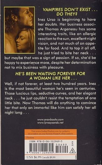Inez Urso is beginning to have her doubts. Her business associate Thomas Argeneau has some interesting traits, like an allergic reaction to the sun, excellent night vision, and not much of an appetite for food. And to top it all off, he just tried to bite her neck . . . but maybe that was a sign of passion. If so, she'd be happy to experience more, despite her determination not to mix business with pleasure. Well, if not forever, at least two hundred years. Inez is the most beautiful woman he's seen in centuries. Those luscious lips, seductive curves, and her elegant neck . . . he just couldn't resist the temptation of one little bite. Now Thomas will do anything to convince her that only an immortal like him can satisfy her all night long . . .