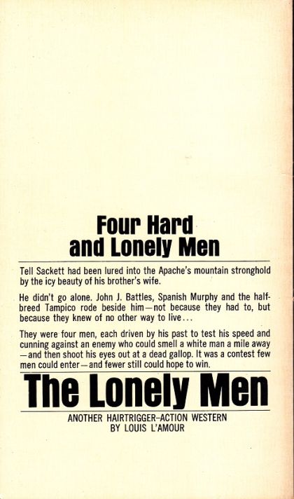 In The Lonely Men, Louis L’Amour spins the tale of a man who must elude an Apache trap—only to discover that his greatest enemy might be very close to home. Tell Sackett had fought his share of Indians and managed to take something of value from his battles: a deep and abiding respect. But that respect is lost when Apache braves kidnap his nephew, forcing Tell to cross the border into the Sierra Madres to bring the boy back. What troubles Tell more, though, is the boy’s mother: Could she possibly be inventing a rescue mission to deliver her husband’s brother into an ambush? Tell knows that the only things he can depend on are his wits and cold steel. But against such adversaries, even these formidable weapons may not be enough.
