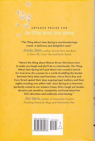 The thing about jane spring is ... at thirty-one, she has everything a woman could ask for and seemingly everything a man could long for-great legs, brains, rising star status in the Manhattan D.A.'s office-but she just can't find a man who'll fall madly in love with her. Men are always asking her out, but for some reason no one wants a second date. So what if she's neck breakingly assertive and somewhat callous? This is the twenty-first century. Right? Maybe not. But what is it that men really want in a woman after all? One snowy night after a bottle of wine and a Doris Day marathon on cable, it hits her: Doris Day always got her man. So Jane Spring trades in her nondescript black pantsuit and clunky diver's watch for pastel pink suits with pearls and pumps, she changes her hair, stops cursing, starts wearing makeup, sweetens her mannerisms and redecorates her whole apartment. And soon her life really does begin to change: Not only does her lazy secretary start working, but everyone seems to be kinder and gentler-and she's got men lining up around the block. But can she keep her inner attack dog on hold long enough to win the most important case of her career...and the man of her dreams? Sharon Krum's magical and hilariously funny novel is a delightful romantic comedy about a driven young woman who must shed her rough exterior and embrace her inner ultrafemininity in order to truly find herself and, eventually, true love.