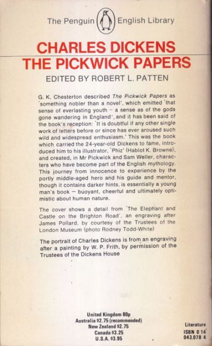 Charles Dickens's satirical masterpiece, "The Pickwick Papers," catapulted the young writer into literary fame when it was first serialized in 1836-37. It recounts the rollicking adventures of the members of the Pickwick Club as they travel about England getting into all sorts of mischief. Laugh-out-loud funny and endlessly entertaining, the book also reveals Dickens's burgeoning interest in the parliamentary system, lawyers, the Poor Laws, and the ills of debtors' prisons. As G. K. Chesterton noted, "Before ÝDickens ̈ wrote a single real story, he had a kind of vision . . . a map full of fantastic towns, thundering coaches, clamorous market-places, uproarious inns, strange and swaggering figures. That vision was Pickwick."