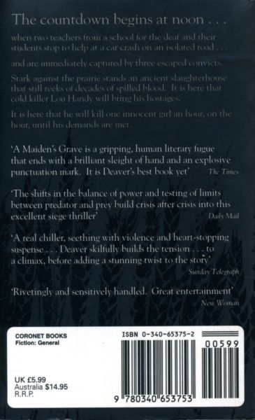 A school bus carrying eight deaf school-girls and their teachers brakes suddenly on a flat Kansas highway. They should never have stopped. Waiting for them are three heartless men just escaped from prison - each with nothing to lose. And now, with the girls as their hostages, they have everything to gain. They make their stand in an abandoned slaughterhouse, and it is there that Lou Handy, a murderer and the convicts' ringleader, announces his terms - to kill one captive an hour unless his demands are met. What follows is a twelve-hour siege of noose-tight tension - and a war of nerves between Handy and the FBI's senior hostage negotiator, Arthur Potter.