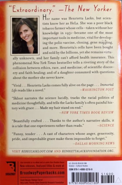 #1 NEW YORK TIMES BESTSELLER • “The story of modern medicine and bioethics—and, indeed, race relations—is refracted beautifully, and movingly.”—Entertainment WeeklyNOW A MAJOR MOTION PICTURE FROM HBO® STARRING OPRAH WINFREY AND ROSE BYRNE • ONE OF THE “MOST INFLUENTIAL” (CNN), “DEFINING” (LITHUB), AND “BEST” (THE PHILADELPHIA INQUIRER) BOOKS OF THE DECADE • ONE OF ESSENCE’S 50 MOST IMPACTFUL BLACK BOOKS OF THE PAST 50 YEARS • WINNER OF THE CHICAGO TRIBUNE HEARTLAND PRIZE FOR NONFICTION • A KIRKUS REVIEWS BEST NONFICTION BOOK OF THE CENTURYA BEST BOOK OF THE YEAR: The New York Times Book Review, Entertainment Weekly, O: The Oprah Magazine, NPR, Financial Times, New York, Independent (U.K.), Times (U.K.), Publishers Weekly, Library Journal, Kirkus Reviews, Booklist, Globe and MailHer name was Henrietta Lacks, but scientists know her as HeLa. She was a poor Southern tobacco farmer who worked the same land as her slave ancestors, yet her cells—taken without her knowledge—became one of the most important tools in medicine: The first “immortal” human cells grown in culture, which are still alive today, though she has been dead for more than sixty years. HeLa cells were vital for developing the polio vaccine; uncovered secrets of cancer, viruses, and the atom bomb’s effects; helped lead to important advances like in vitro fertilization, cloning, and gene mapping; and have been bought and sold by the billions. Yet Henrietta Lacks remains virtually unknown, buried in an unmarked grave.Henrietta’s family did not learn of her “immortality” until more than twenty years after her death, when scientists investigating HeLa began using her husband and children in research without informed consent. And though the cells had launched a multimillion-dollar industry that sells human biological materials, her family never saw any of the profits. As Rebecca Skloot so brilliantly shows, the story of the Lacks family—past and present—is inextricably connected to the dark history of experimentation on African Americans, the birth of bioethics, and the legal battles over whether we control the stuff we are made of. Over the decade it took to uncover this story, Rebecca became enmeshed in the lives of the Lacks family—especially Henrietta’s daughter Deborah. Deborah was consumed with questions: Had scientists cloned her mother? Had they killed her to harvest her cells? And if her mother was so important to medicine, why couldn’t her children afford health insurance? Intimate in feeling, astonishing in scope, and impossible to put down, The Immortal Life of Henrietta Lacks captures the beauty and drama of scientific discovery, as well as its human consequences.