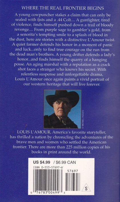 WHERE THE REAL FRONTIER BEGINSA young cowpuncher stakes a claim that can only be sealed with fists and a .44 Colt. . . . A gunfighter, tired of violence, finds himself pushed down a trail of bloody revenge. . . . From purple sage to gambler’s gold, from a señorita’s tempting smile to a splash of blood in the dust, here are stories with a distinctive L’Amour twist. A quiet farmer defends his honor in a moment of panic and luck . . . only to find true courage on the run from the dead man’s brothers. A young drifter defends a lady’s honor . . . and finds himself the quarry of a hanging posse. An aging marshal with a reputation as a crack shot faces a stranger who knows his secret. With relentless suspense and unforgettable drama, Louis L’Amour once again paints a vivid portrait of our western heritage that will live forever.