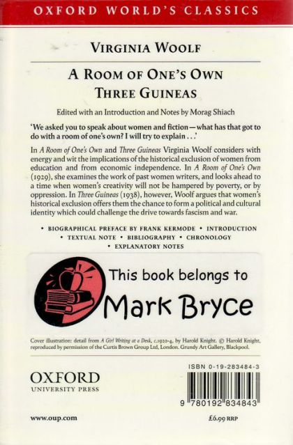 A room of one's own was presented originally as two speeches to the Arts Society at Newham in 1928, and is remarkable for its distinctive tone, for Woolf ́s witty and deceptively casual style, and for her decision to largely eschew abstract arguments in favor of narrative, anecdote and the guidance of a strong, abiding first person narrator. She also, refreshingly, avoids doctrine and bombast, instead infusing her arguments with subtlety, curiosity and open-minded speculation. In addressing the question of women and fiction, the author explores the lack of equal opportunity for women by describibg a tour of Oxbridge, a mythical English university, and the obstacles to education a woman encounters there, concluding that "a woman must have money and a room of her own if she is to write fiction".