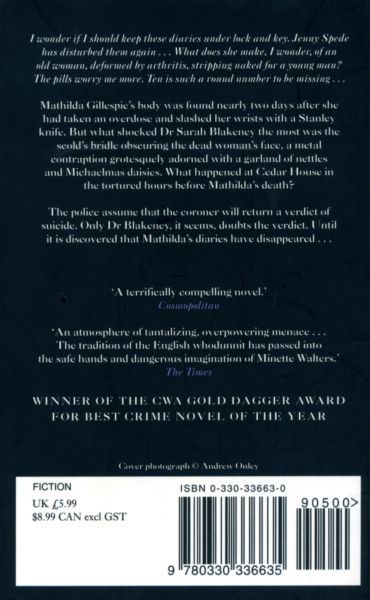 Winner of the CWA Gold Dagger Award for Best Crime Novel of the YearI wonder if I should keep these diaries under lock and key. Jenny Spede has disturbed them again . . . What does she make, I wonder, of an old woman, deformed by arthritis, stripping naked for a young man? The pills worry me more. Ten is such a round number to be missing . . . Mathilda Gillespie's body was found nearly two days after she had taken an overdose and slashed her wrists with a Stanley knife. But what shocked Dr Sarah Blakeney the most was the scold's bridle obscuring the dead woman's face, a metal contraption grotesquely adorned with a garland of nettles and Michaelmas daisies. What happened at Cedar House in the tortured hours before Mathilda's death? The police assume that the coroner will return a verdict of suicide. Only Dr Blakeney, it seems, doubts the verdict. Until it is discovered that Mathilda's diaries have disappeared . . . 'An atmosphere of tantalizing, overpowering menace . . . The tradition of the English whodunnit has passed into the safe hands and dangerous imagination of Minette Walters' The Times