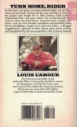 TURN HOME, RIDER In this land, the place you leave behind might not be there when you get back. At least not the way you knew it. Tack Gentry of the G Bar, Chat Lock of Dutchman’s Flat, and Ward McQueen of the Tumbling K knew how it felt to struggle against men who were trying to take from them what they believed in. For the bad rush in when the good leave, and men will choose to fight, not just over drunken threats, gambling losses, and honor, but for land, friendships, family, and even love—a struggle magnificently captured in these eleven great stories written and handpicked by the incomparable Louis L’Amour himself.