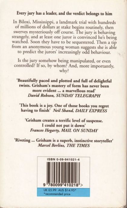 Based on the bestseller by John Grisham, Runaway Jury is a slick thriller that's exciting enough to overcome the gaps in its plot. The ultimate target has been changed: Grisham's legal assault on the tobacco industry was switched to the hot-button issue of gun control (no doubt to avoid comparison to The Insider) in a riveting exposé of jury-tampering. Gene Hackman plays the ultra-cynical, utterly unscrupulous pawn of the gun-makers, using an expert staff and advanced electronics to hand-pick a New Orleans jury that will return a favorable verdict; Dustin Hoffman (making his first screen appearance with real-life former roommate Hackman) defends the grieving widow of a gun-shooting victim with idealistic zeal, while maverick juror John Cusack and accomplice Rachel Weisz play both ends against the middle in a personal quest to hold gun-makers accountable. It's riveting stuff, even when it's obvious that Grisham and director Gary Fleder have glossed over any details that would unravel the plot's intricate design.