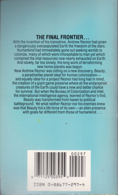 The final frontier... With the invention of his transdrive, Andrew Reznor had given a dangerously overpopulated Earth the freedom of the stars. Humankind had immediately gone out seeking worlds to colonize, many of which were inhospitable to man yet which contained the vital resources now nearly exhausted on Earth. And slowly, far too slowly, the long work of terraforming new home planets was begun. Now Andrew Reznor was sitting on a new discovery. Beauty, a paradiselike planet ideal for human colonization -- and equally ideal for a project Reznor long had in mind, the creation of a giant game preserve where all the endangered creatures of the Earth could have a new and better chance for survival. But when the Bureau of Colonization and Intel, the international agency, learned of Reznor's find, Beauty was transformed from a haven to a political battleground. Yet what neither Reznor nor his enemies knew was that Beauty had a lifeforce of its own -- an alien presence with goals far different from those of humankind...
