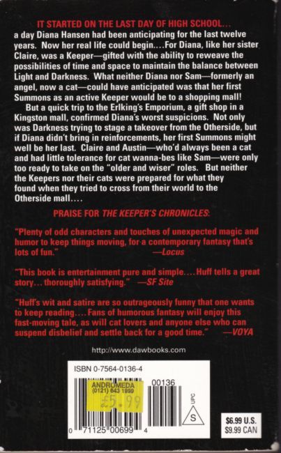 Discover the third book in the Keeper's Chronicles, where two young women master the possibilities of time and space, maintaining the balance between worlds to protect Earth.It started on the last day of high school, a day Diana Hansen had been anticipating for the last twelve years. Now, her real life could begin. For Diana, like her sister Claire, was a Keeper—gifted with the ability to reweave the possibilities of time and space to maintain the balance between Light and Darkness. What neither Diana nor Sam—formerly an angel, now a cat—could have anticipated was that her first Summons as an active Keeper would be to a shopping mall! But a quick trip to the Erlking’s Emporium, a gift shop in a Kingston mall, confirmed Diana’s worst suspicions. Not only was Darknesss trying to stage a takeover from the Otherside, but if Diana didn’t bring in reinforcements, her first Summons might well be her last. Claire and Austin—who’d always been a cat and had little tolerance for cat wannabes like Sam—were only too ready to take on their “older and wiser” roles. But neither the Keepers nor their cats were prepared for what they found when they tried to cross from their world to the Otherside mall....