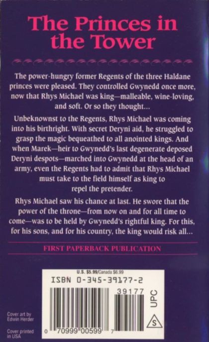 THE PRINCES IN THE TOWER The power-hungry former Regents of the three Haldane princes were pleased. They controlled Gwynedd once more, now that Rhys Michael was king--malleable, wine-loving, and soft. Or so they thought... Unbeknownst to the Regents, Rhys Michael was coming into his birthright. With secret Deryni aid, he struggled to grasp the magic bequeathed to all anointed kings. And when Marek--heir to Gwynedd's last degenerate deposed Deryni despots--marched into Gwynedd at the head of an army, even the Regents had to admit that Rhys Michael must take to the field himself as king to repel the pretender. Rhys Michael saw his chance at last. He swore that the power of the throne--from now on and for all time to come--was to be held by Gwynedd's rightful king. For this, for his sons, and for his country, the king would risk all... FIRST PAPERBACK PUBLICATION