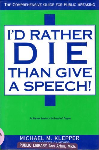 Knees weaken, voices quiver, and sweat glands go into overdrive at the mere thought of having to speak in public. Now, finally, I'd Rather Die than Give a Speech! presents a method that is sure to make public speaking easier and more enjoyable. This step-by-step game plan will help anyone transform speechmaking from a teeth-chattering ordeal to a rewarding experience that can benefit their career and company. With practical tools and strategies for both speech preparers and presenters alike, this handbook offers new ways to grab and hold an audience's attention, including all about ear appeal, which can turn lackluster speeches into knockouts; covers the entire process of speechmaking - from preparation to performance to Q&A - in a lively, easy-to-read style; includes chapter checklists and pitfalls to be avoided; and contains examples and anecdotes that are easy to relate to and fun to read. I'd Rather Die than Give a Speech shows you how to craft and deliver a speech that grabs the audience's attention and holds it through the barrage of questions that often follow presentations.