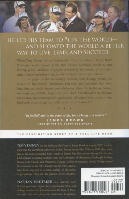 He led his team to #1 in the world and showed the world a better way to live, lead, and succeed. When Tony Dungy led the Indianapolis Colts to victory in Super Bowl XLI and made history as the first African American coach to win the big game millions of people, amazed by the success of his quiet, authoritative leadership style, wondered: how does he get it done? In the pages of this fascinating memoir, Tony Dungy reveals the secrets to his success principles, practices, and priorities that have kept him on track despite overwhelming personal and professional obstacles, including firings, stereotypes, and the tragic loss of a child. In the face of so much adversity, Tony has not only survived but risen to the very top of his profession in a way that's won the respect of fans, players, and ev en his competitors. His thoughts on leading, succeeding, and attaining true significance will inspire you to take a long, hard look at the things that "really" matter in your own life.