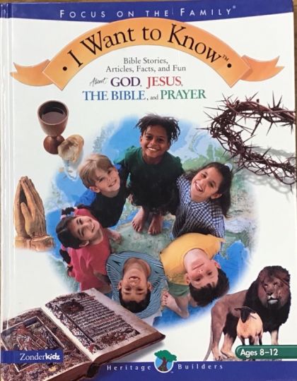 Now, there's a book that simply says it all from 'Focus on the Family' and 'The Heritage Builders Series.' Combined here are four of the best-selling books from the I Want to Know(TM) series---Jesus, God, the Bible, and Prayer---designed to help kids develop there own heritage of faith. Filled with the interesting facts and articles that you've always loved in all the I Want to Know(TM) books, now we've put together a four in one book to help teach the basic message of the Christian faith in a way that is fun and creative. This fun, informative book is not only packed with great full-color photos, cartoons, and graphics, but it has loads of new information that includes questions and activities that are perfect for any 8--12 year old, or for the entire family.