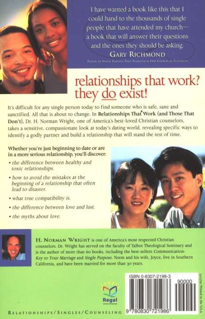 Young people today, many of whom grew up in painfully dysfunctional homes, are waiting longer to get married, often out of fear of choosing the wrong partner. They want desperately to get it right the first time. Now singles can find help and hope in an excellent guide to relationships that will work and those that won't. Dr. H Norman Wright provides simple, practical guidelines for identifying partners with positive potential for a loving, long-term relationship. Just as important, Wright shows how to avoid wasting time, money and emotional energy on hopeless relationships with incurable negatives. Topics include compatibility, risk-taking, infatuation versus love, the dangers of premarital sex, common relationship mistakes and the characteristics of a godly, healthy relationship.