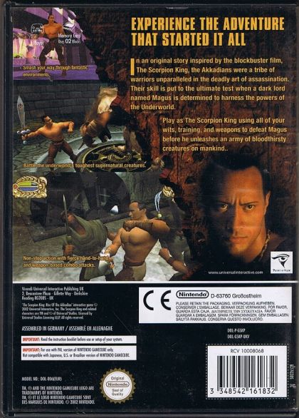 Unleash the power of the Scorpion King in a new action adventure game inspired by The Rock's blockbuster feature film from Universal Pictures. In this exciting new story, players assume the role of the hero, Mathayus (The Scorpion King), as he undergoes new journeys to exotic locations and battles multiple enemies to become one of the deadly assassins known as the Akkadians.