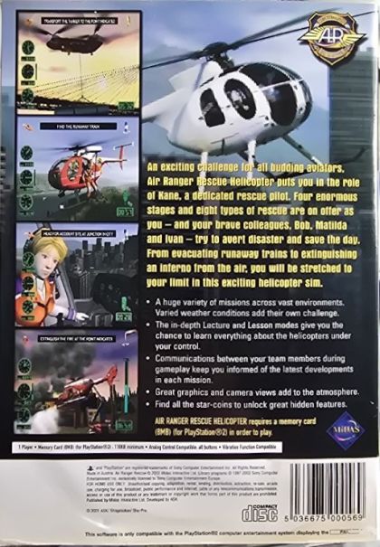 An exciting challenge for all budding aviators, Air Ranger Rescue Helicopter puts you in the role of Kane, a dedicated rescue pilot. Four enormous stages and eight types of rescue are on offer as you - and your brave colleagues, Bob, Matilda and Ivan - try to avert disaster and save the day. From evacuating runaway trains to extinguishing an inferno from the air, you will be stretched to your limit in this exciting helicopter sim.