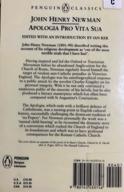 John Henry Newman, one of the towering figures of the early Victorian Church of England, caused shock and outrage in equal measure when he announced his espousal of Roman Catholicism in 1845. His Apologia, written nearly twenty years later in response to a scurrilous public attack by Charles Kingsley, is a superbly crafted response to those who criticized his actions and questioned his motives, and traces his spiritual development since boyhood, his close involvement in the high church Tractarian Movement and his agonizing decision to reject the church he had been born into. Ostensibly an autobiography and a speech for the defence, the Apologia transcends self-justification to explore the very nature of Christianity and its place in the modern age.For more than seventy years, Penguin has been the leading publisher of classic literature in the English-speaking world. With more than 1,700 titles, Penguin Classics represents a global bookshelf of the best works throughout history and across genres and disciplines. Readers trust the series to provide authoritative texts enhanced by introductions and notes by distinguished scholars and contemporary authors, as well as up-to-date translations by award-winning translators.