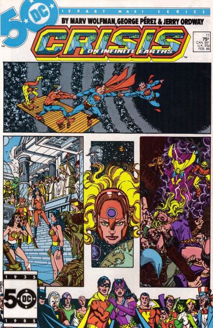 The very start of the series is reprised as it is revealed a single universe has now been created, rather than a Multiverse. Several Earth-Two heroes, however, appear to have awakened on Earth-One and, when they attempt to return find that it no longer exists. The heroes reconvene and work out that things have changed and that Earth-Two never existed in this universe but all the heroes of all the Earths who were at the dawn of time still remember their original Earths. As they struggle to come to terms with this, the Anti-Monitor appears and drags the Earth into the anti-matter universe.