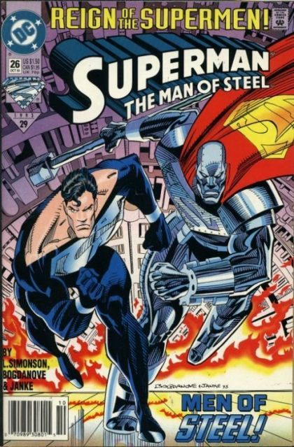 The Supermen are facing all out assault. Steel heads to the engine room to prevent the rocket from firing, while Supergirl and the original Superman face off against Mongul. None of the heroes are aware that Hal Jordan, Green Lantern of sector 2814, has just learned that his beloved home town of Coast City has been wiped off the map.