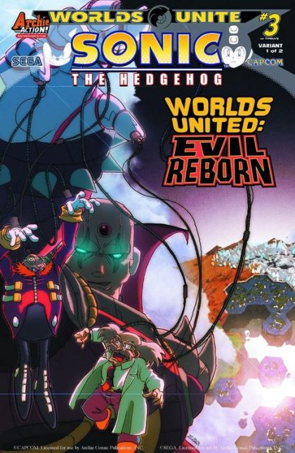 'Sonic/Mega Man: Worlds Unite,' Part 3. It's a cascade of cross-dimensional chaos! On Sonic's World, the Freedom Fighters are battling with the terrifying arsenal of M'egga Man! On Mega Man's World, the Robot Masters can't keep up with the super speedy Sonic Man! Who can possibly save our heroes? The answer is sure to surprise you! Featuring cover art from the legendary Patrick 'SPAZ' Spaziante, villain variant by T.Rex and part 3 of the epic 12-part connecting variant cover series by artist Ben Bates!