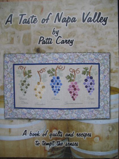 Each of the 14 projects in this book is based on a wine from the Napa Valley. Patti chose 6 red wines, 5 white wines and a sparkling wine and depicted those wines though the quilts. Then she added a recipe to complement the wine.