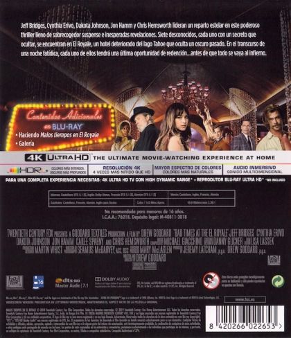 Lake Tahoe, 1969. Seven strangers, each one with a secret to bury, meet at El Royale, a decadent motel with a dark past. In the course of a fateful night, everyone will have one last shot at redemption.