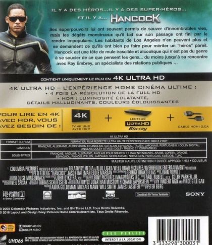 Hancock is a down-and-out superhero who's forced to employ a PR expert to help repair his image when the public grows weary of all the damage he's inflicted during his lifesaving heroics. The agent's idea of imprisoning the antihero to make the world miss him proves successful, but will Hancock stick to his new sense of purpose or slip back into old habits?
