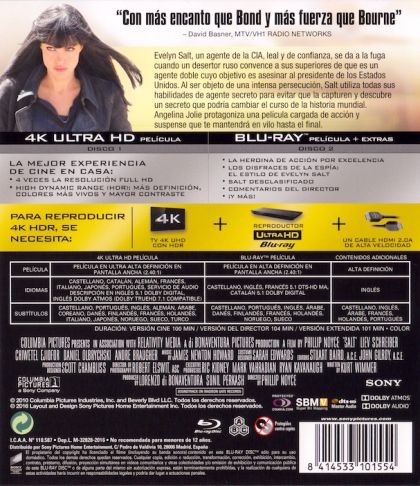 As a CIA officer, Evelyn Salt swore an oath to duty, honor and country. Her loyalty will be tested when a Russian defector accuses her of being a Russian sleeper spy. She goes on the run, using all her skills and years of experience as a covert operative to elude capture, protect her husband, and stay one step ahead of her colleagues at the CIA. Her efforts to prove her innocence only serve to cast doubt on her motives, as the hunt to uncover the truth behind her identity continues and the question remains: "Who is Salt?"