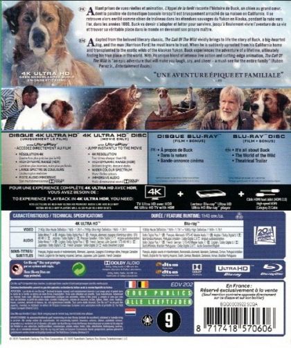 Buck is a big-hearted dog whose blissful domestic life is turned upside down when he is suddenly uprooted from his California home and transplanted to the exotic wilds of the Yukon during the Gold Rush of the 1890s. As the newest rookie on a mail delivery dog sled team—and later its leader—Buck experiences the adventure of a lifetime, ultimately finding his true place in the world and becoming his own master.
